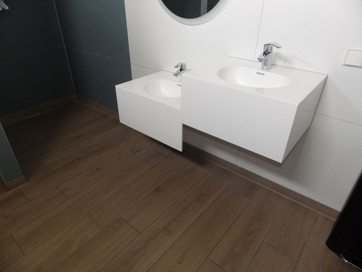- Mit einer großen Auswahl an Formen und Größen sind viele Gestaltungsvarianten individuell möglich. Fugenlose Lösungen mit integriertem Waschplatz in der Ablageplatte können ausgeführt werden. Ebenso ist die Integration in ein Badmöbelsystem aus anderen Werkstoffen problemlos möglich, so sind fantasievollen Kombinationen keine Grenzen gesetzt. Mineralwerkstoff kann in einer großen Farbpalette angeboten und bearbeitet werden.